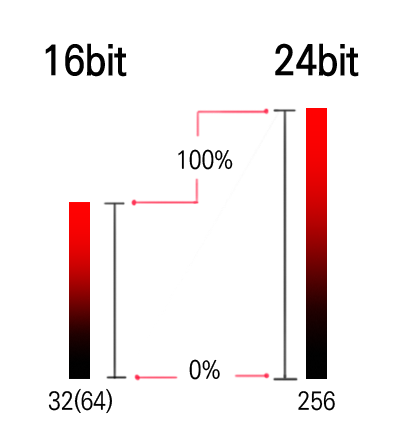 하지만 각 채널이 5,6,5bit가 되는 16bit 컬러에서는 R32 G64 B32가 흰색입니다.